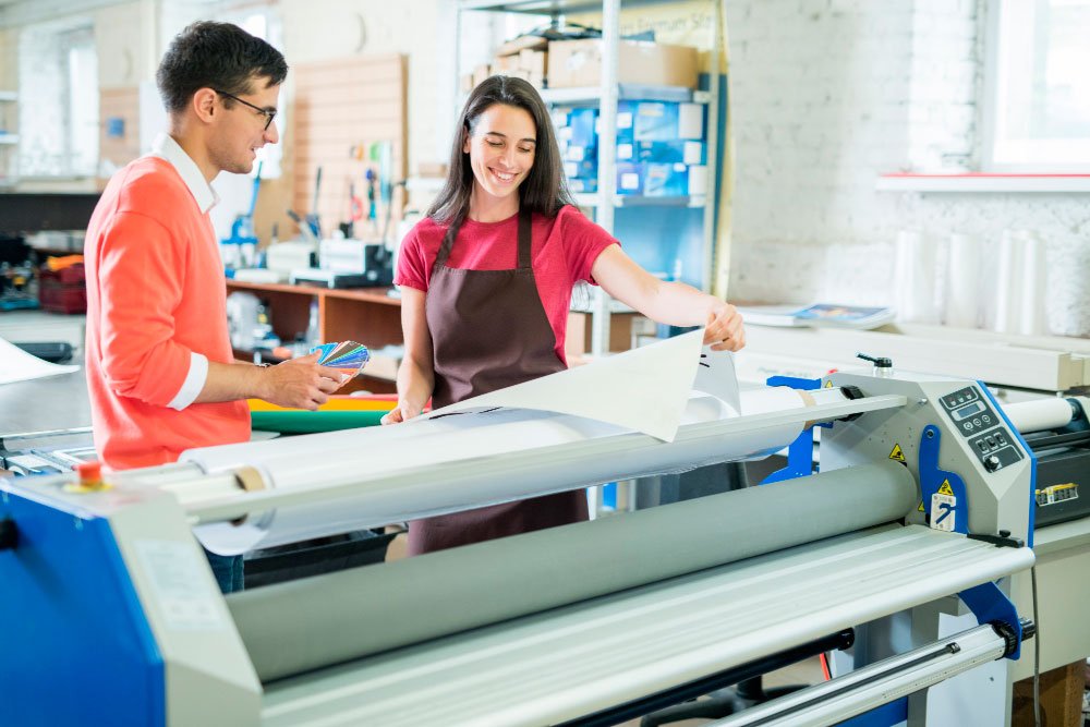 Transforma tu proyecto en una pieza terminada. Podemos imprimir y diseñar casi cualquier cosa, desde carteles y pancartas hasta folletos, productos promocionales y formularios, con opciones de impresión de datos variables, impresión web y pedidos personalizados en línea.